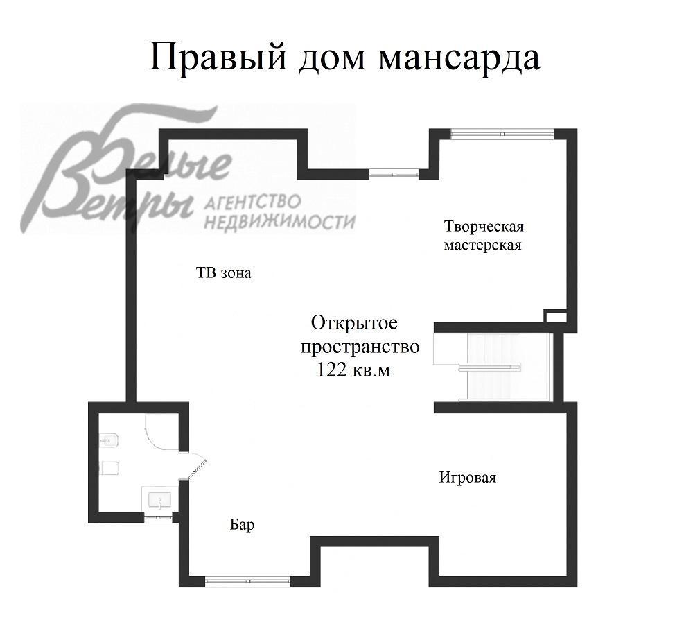 ПРАВЫЙ ДОМ: мультизональное пространство 122 кв.м, санузел 5 кв.м.