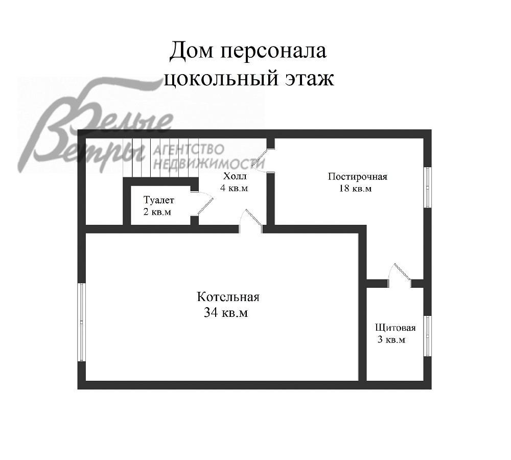 ДОМ ПЕРСОНАЛА: холл 4 кв.м, санузел 2 кв.м, котельная 34 кв.м, щитовая 3 кв.м, прачечная 18 кв.м.