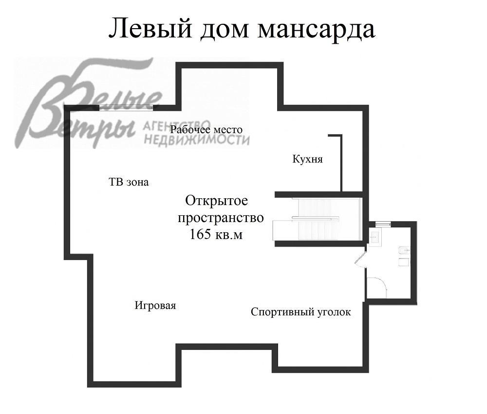 3-ий этаж: ЛЕВЫЙ ДОМ: мультизональное пространство 155 кв.м, санузел 7 кв.м.