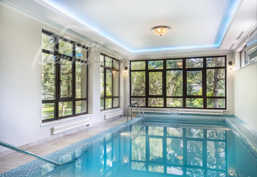 Меблированный коттедж 500 кв.м класса люкс с бассейном, в классическом стиле на большом участке 29 соток в обжитом охраняемом поселке премиум класса. Внутренняя отделка дома выполнена по авторскому дизайн проекту с использованием дорогих натуральных элитных материалов. Функциональная планировка с 4 просторными спальнями, крытая терраса с уютной зоной отдыха, сауна, кинозал, квартира для персонала и гараж на 3 м/м. Красивый, приватный лесной участок с ландшафтом располагает к приятному время провождению. В распоряжении жителей собственная инфраструктура: фитнес-клуб с бассейном и СПА, детские и спортивные площадки, прогулочные зоны вдоль реки. В ближайшей доступности школы, детские сады, супермаркеты, рестораны и службы быта.
