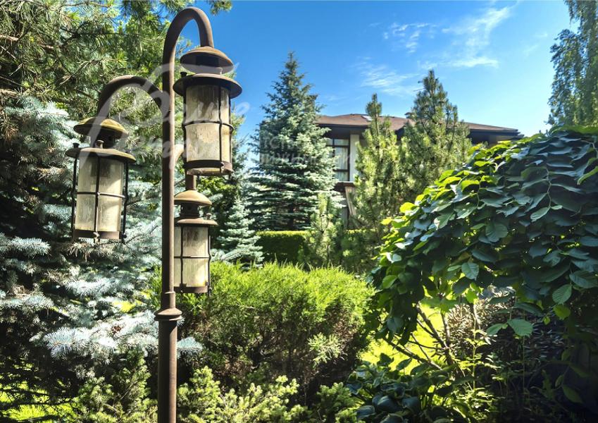 Благоустройство участка: На участке растут множество взрослых и декоративных деревьев и кустарников, газон. Есть зона барбекю с мангалом.